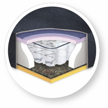 Basis: Box mit vergütetem 4-Gang Taschenfederkern auf einem Tragrahmen aus massivem Buchenholz und seitlichen Schaumstoffabdeckungen. |